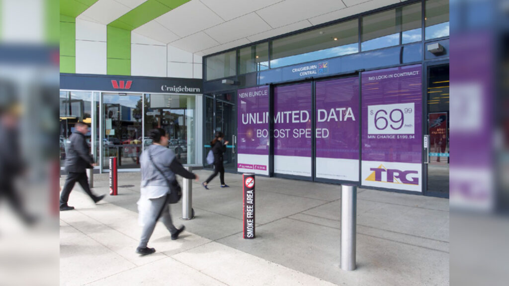 Entrance door decals are designed to engage the consumer just prior to entering the shopping centre. They are large, visually impressive and impossible to miss as you make your entrance.